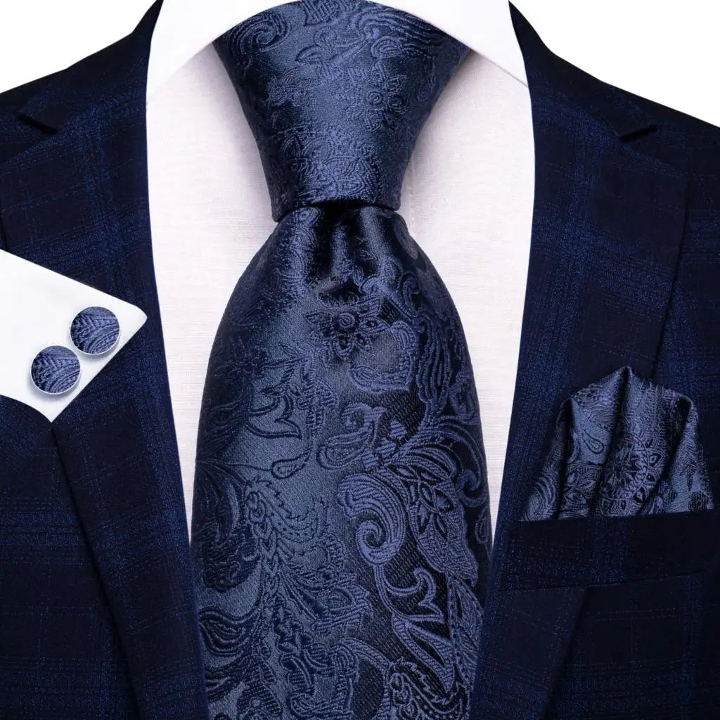 Blått slips, mansjettknapper og lommetørkle. Velg mellom flere varianter.
