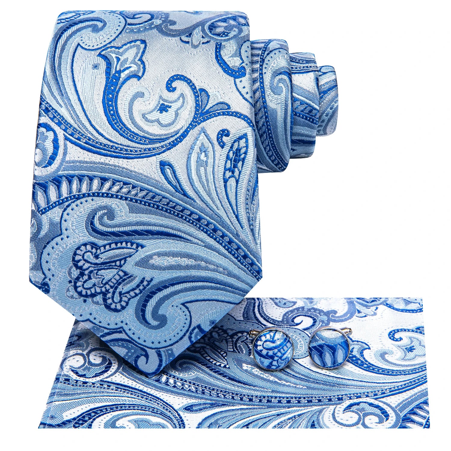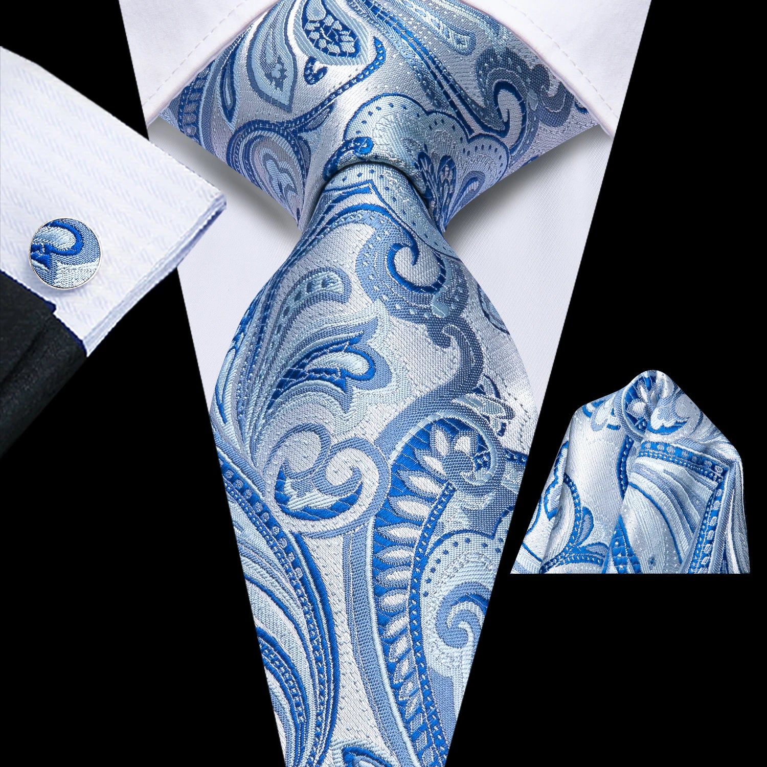 Blått slips, mansjettknapper og lommetørkle. Velg mellom flere varianter.