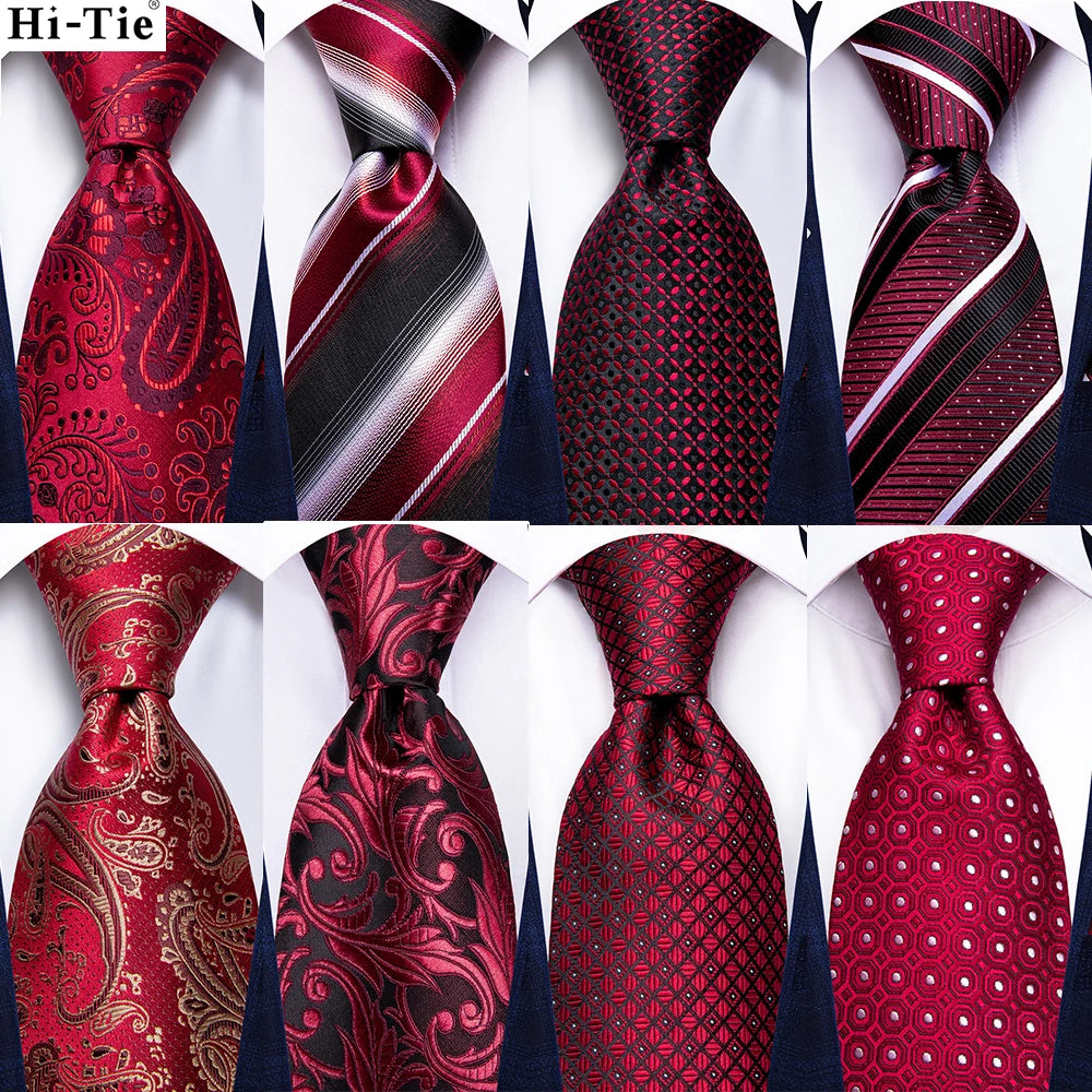 Rødt slips, mansjettknapper og lommetørkle. Velg mellom flere varianter.