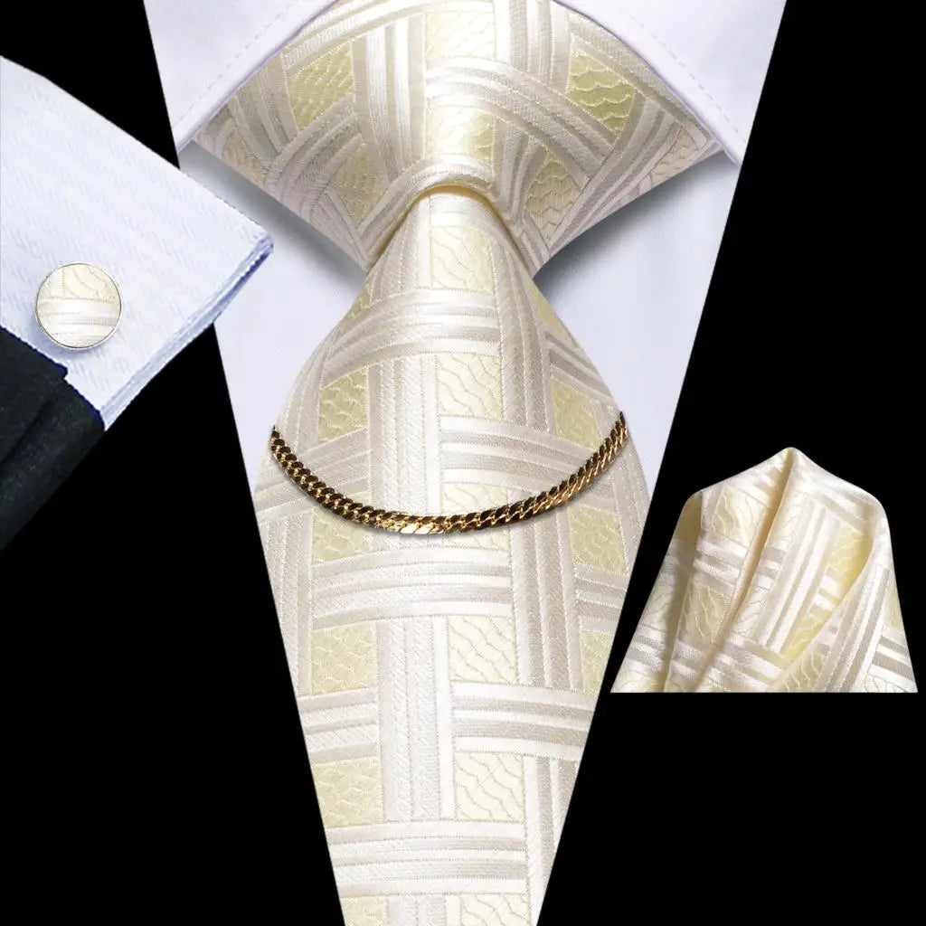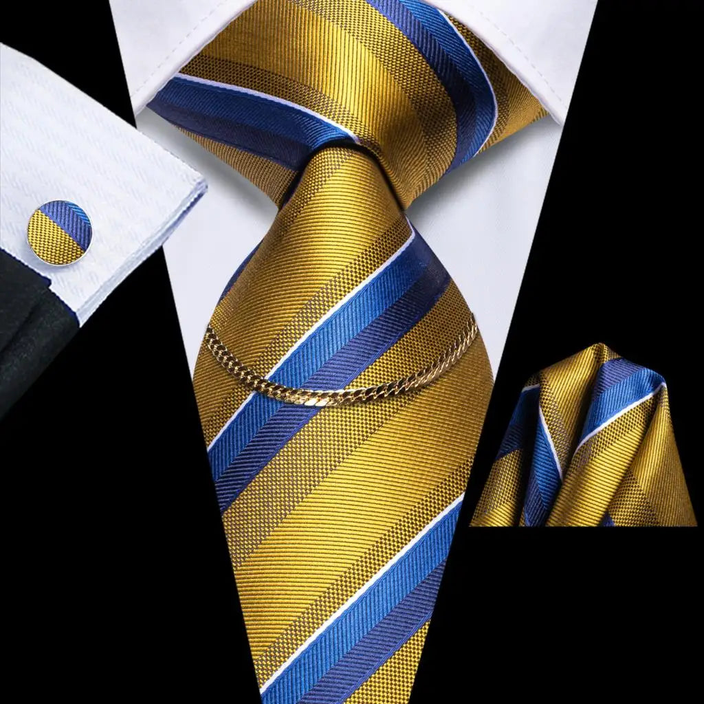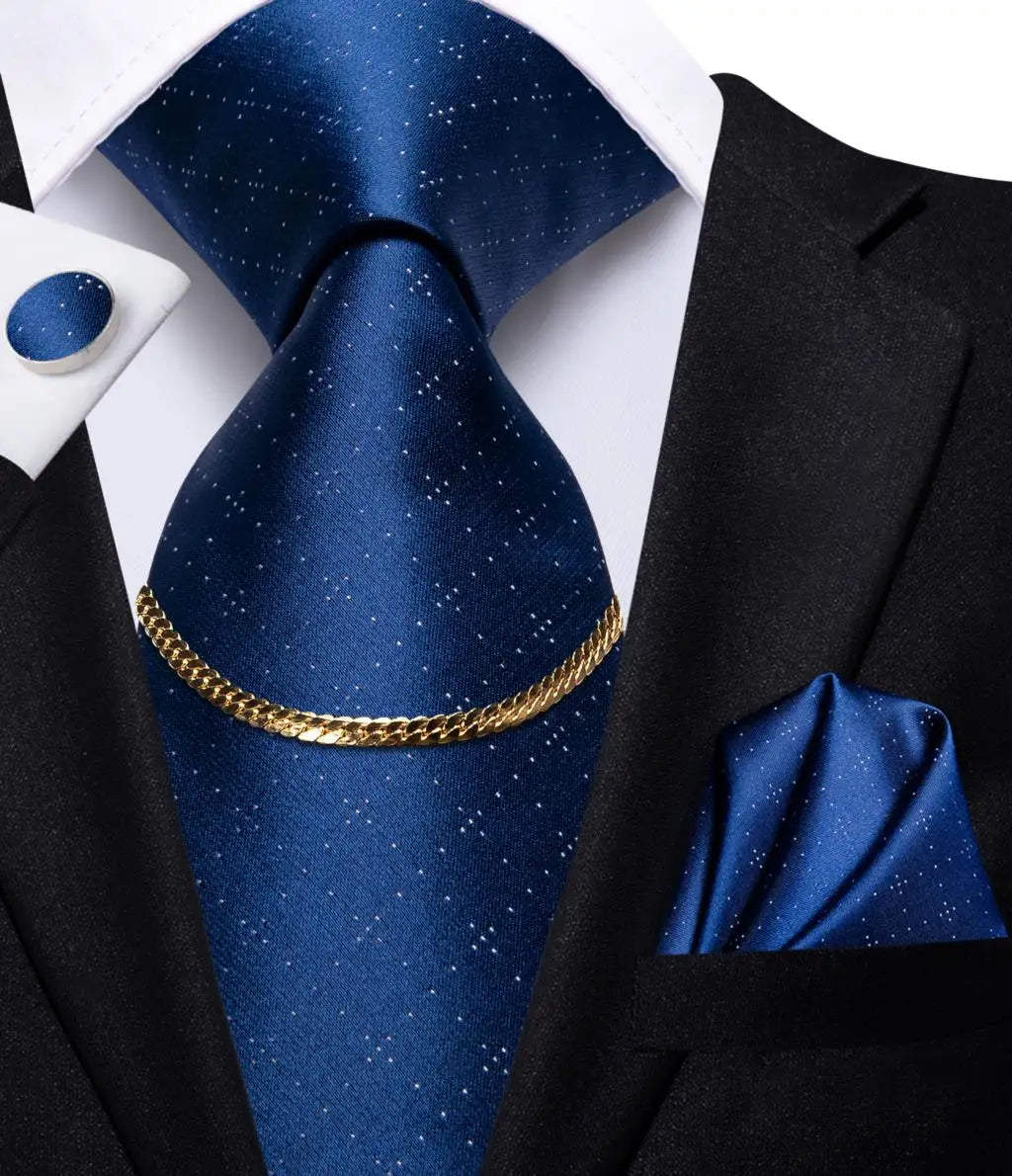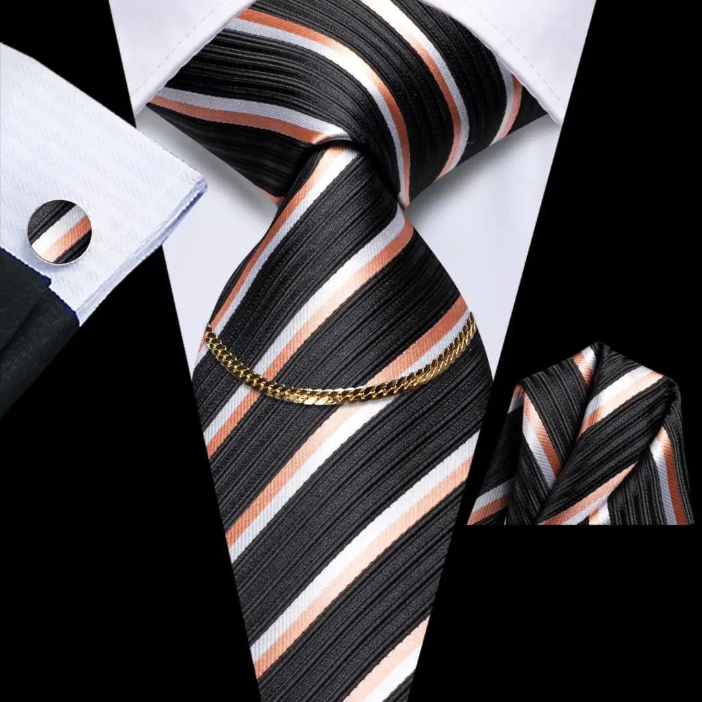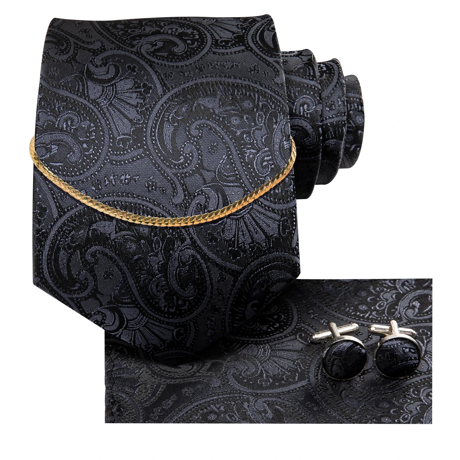 Svart slips, mansjettknapper og lommetørkle. Velg mellom flere varianter.